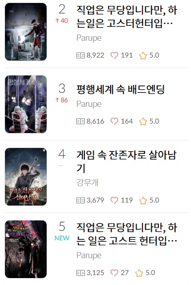 Parupe 2026-02-10 23:47:01 안녕하세요 parupe 입니다. 오늘은 이곳저곳 눈오거나 비가 오는 장소가 있던데 다들 괜찮으시나요? 이쪽은 아침에는 눈이 많이 내리더니 비로 바뀌었더라고요. 내일은 눈이 엄청 많이 내린다는 뉴스를 봤는데 어떨런지.. 그건 그렇고 랭킹... 주간은 봤으면서 월간은 이제 봤네요 ㅋㅋㅋㅋ ...하... 이것저것 신경을 많이 써서 그런가.. 아니 근데 완결난 작품이 5위에 있는거 보고 어라? 했어요. 완결된 것도 차곡차곡 봐주시는 분이 있구나 하고 기뻤어요! 오랜만에 랭킹 결과를 보고 힘내서 마감 완료했습니다! 항상 감사드리고 곧 새 표지 자랑하러 올 테니 기대해주세요! 월간 랭킹 3개나 주셔서 감사합니다!