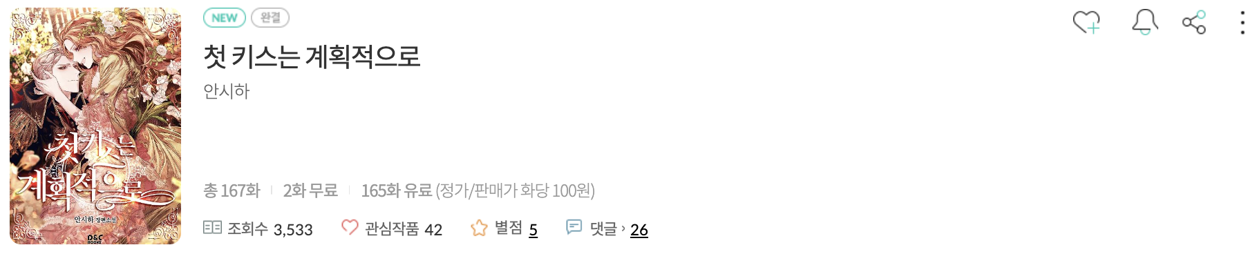 여주만 바라보는 계략 다정남 남주와 해맑고 마음 따뜻한 여주의 케미를 볼 수 있는 작품, ‘첫 키스는 계획적으로’ 추천드려요 :D