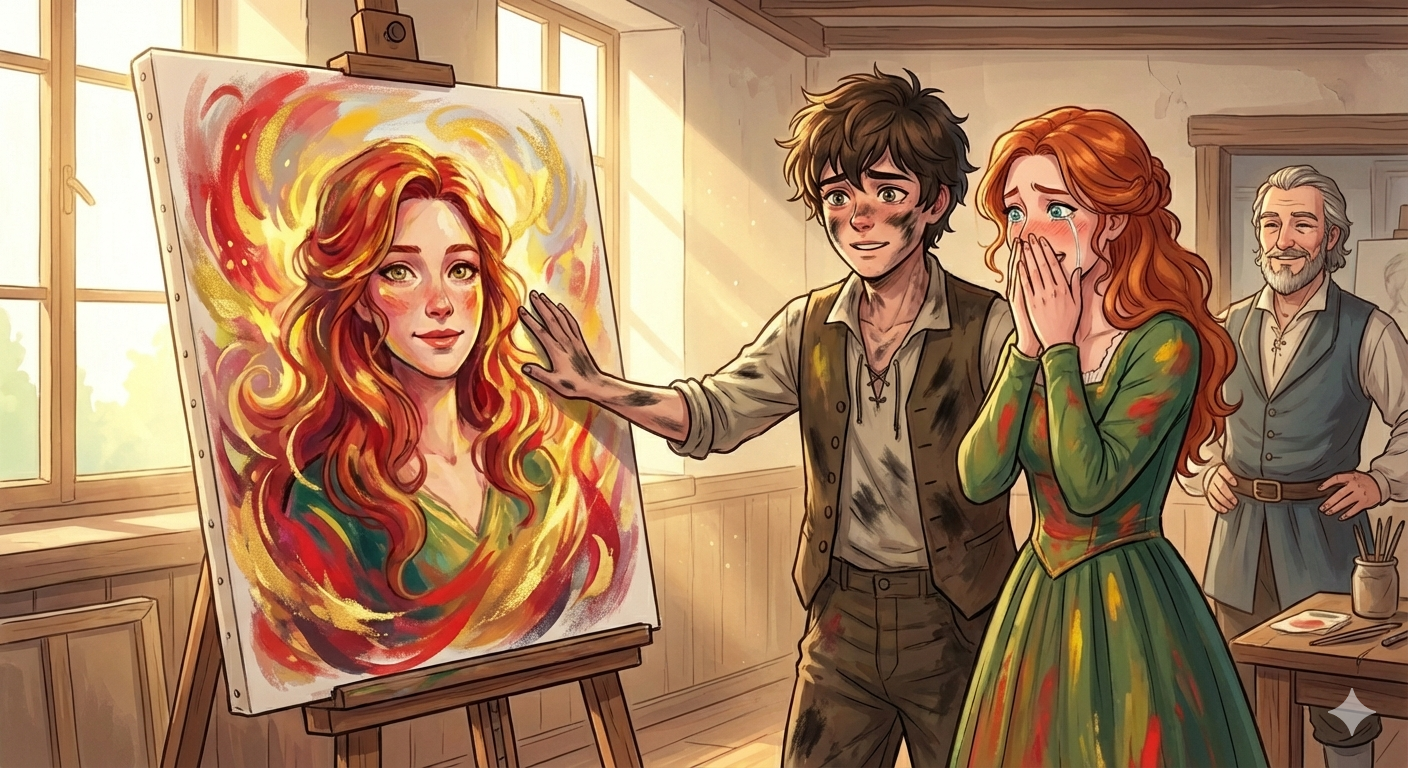 그는 그녀를 그린다.