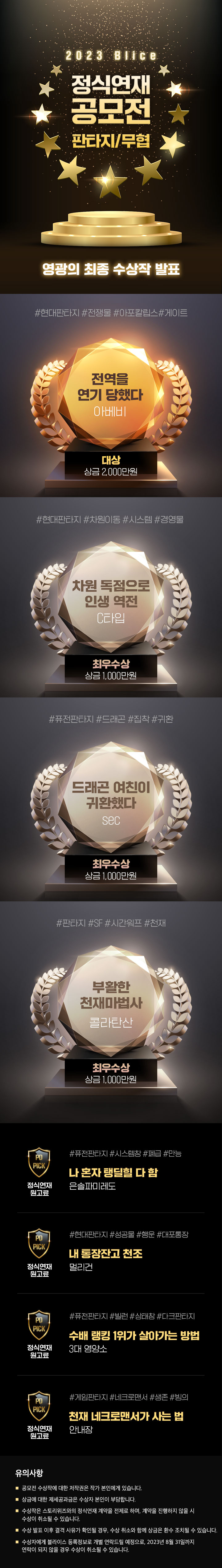 [발표] 블라이스 정식연재 공모전 수상작 발표 #판타지/무협